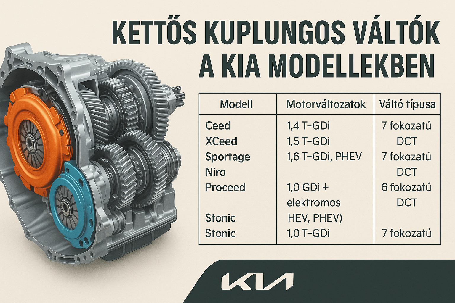 Mely KIA modellekben található meg kettős kuplungos váltó?